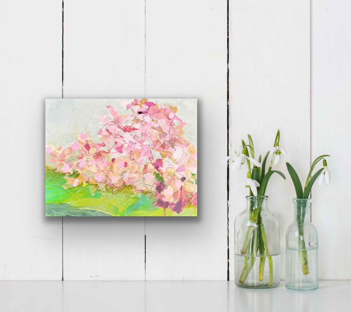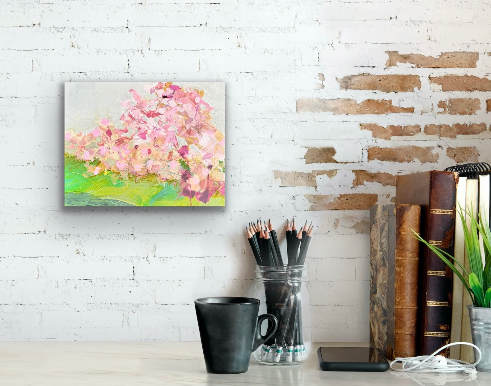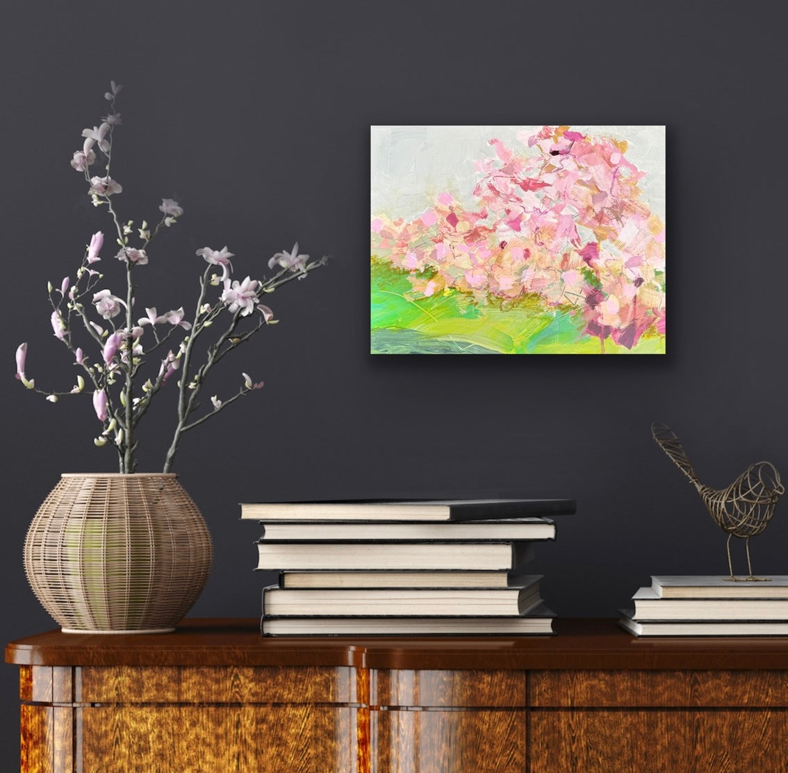 Ault Park captures the serene beauty of cherry blossoms in full spring bloom. This intimate 14 x 11 painting on cradle canvas brings the delicate essence of nature's most celebrated season into your home. The carefully composed piece celebrates the fleeting elegance of flowering trees with thoughtful brushwork and color.