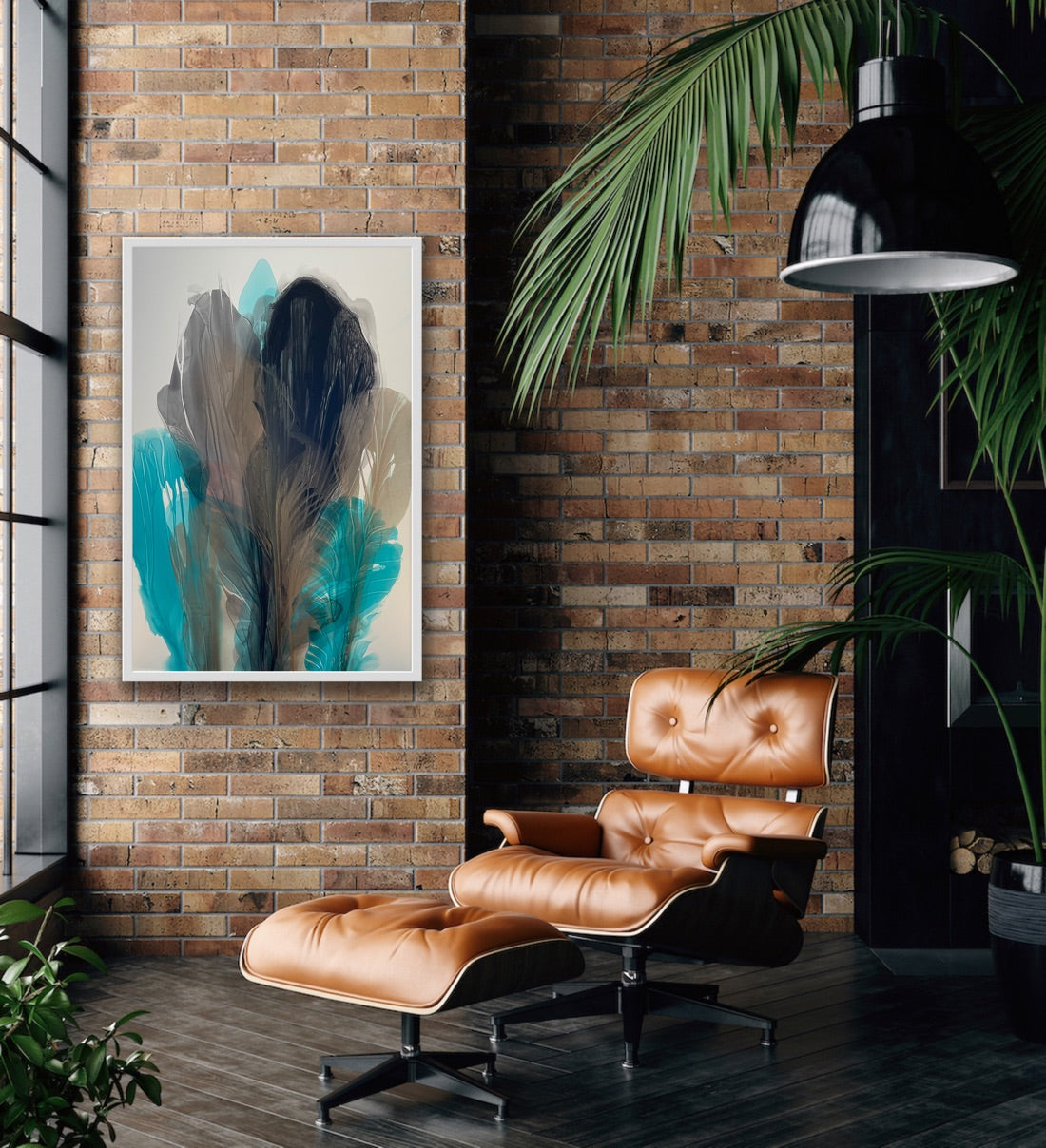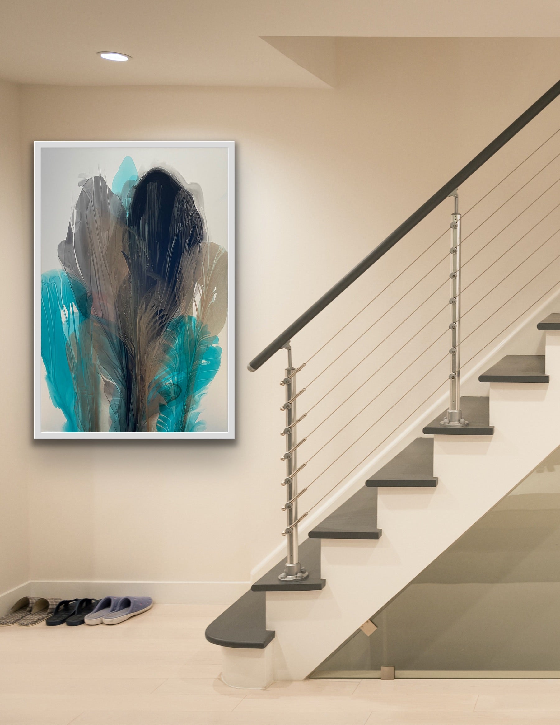 Discover the captivating allure of Bronze & Turquoise 40x60, an original painting that brings a cool, contemporary vibe to any space. Featuring elegant feathery shapes in rich black, bronze, and vibrant turquoise tones, this artwork adds depth and sophistication to your décor. Its unique color palette and fluid design make it a striking focal point that effortlessly complements modern interiors. Elevate your environment with this distinctive piece that blends artistry with style.