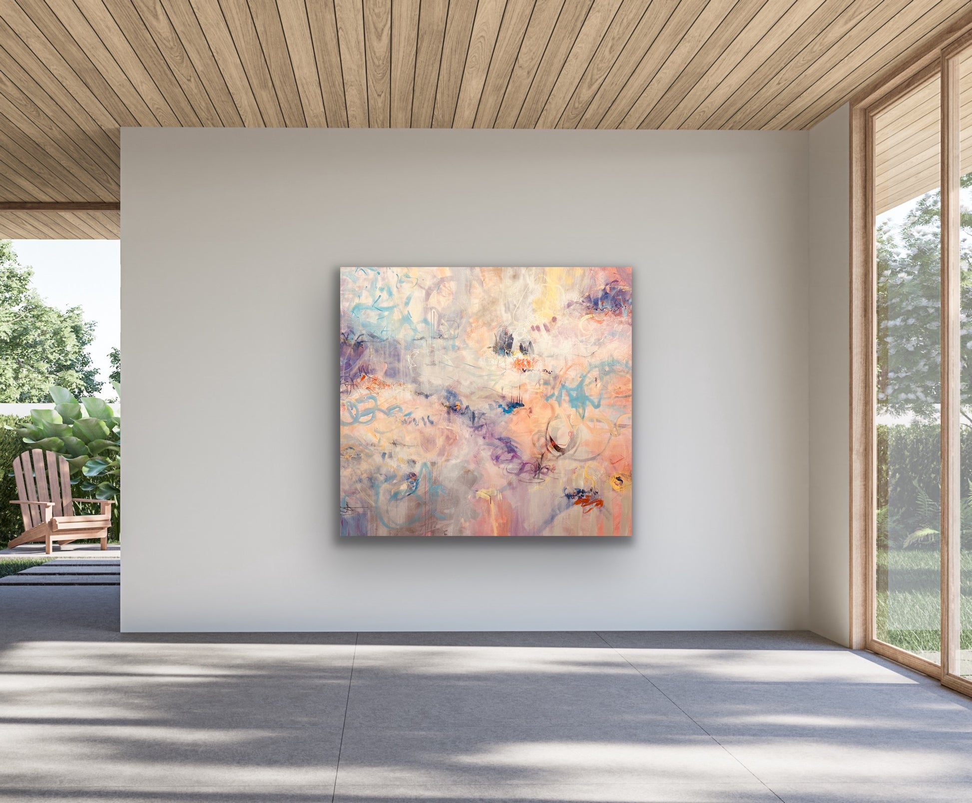 Introducing Carnival 72x66, a mesmerizing work of art featuring dreamy cotton candy colors and large-scale abstract design. Indulge in the mesmerizing mark making and create a stunning focal point in your home.