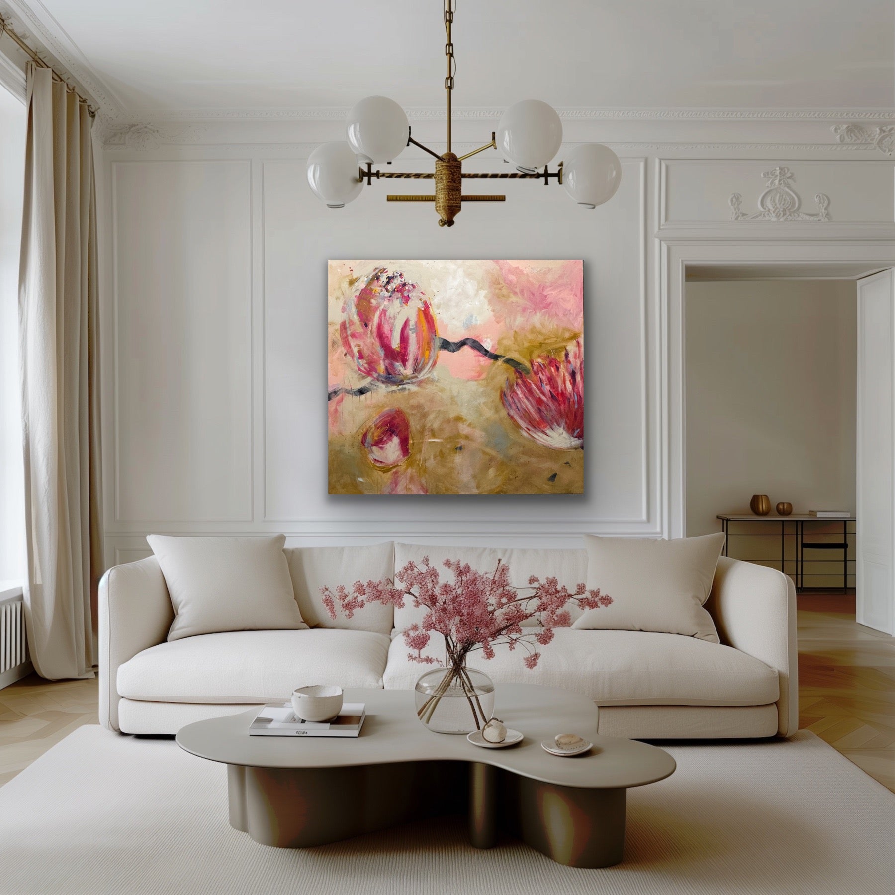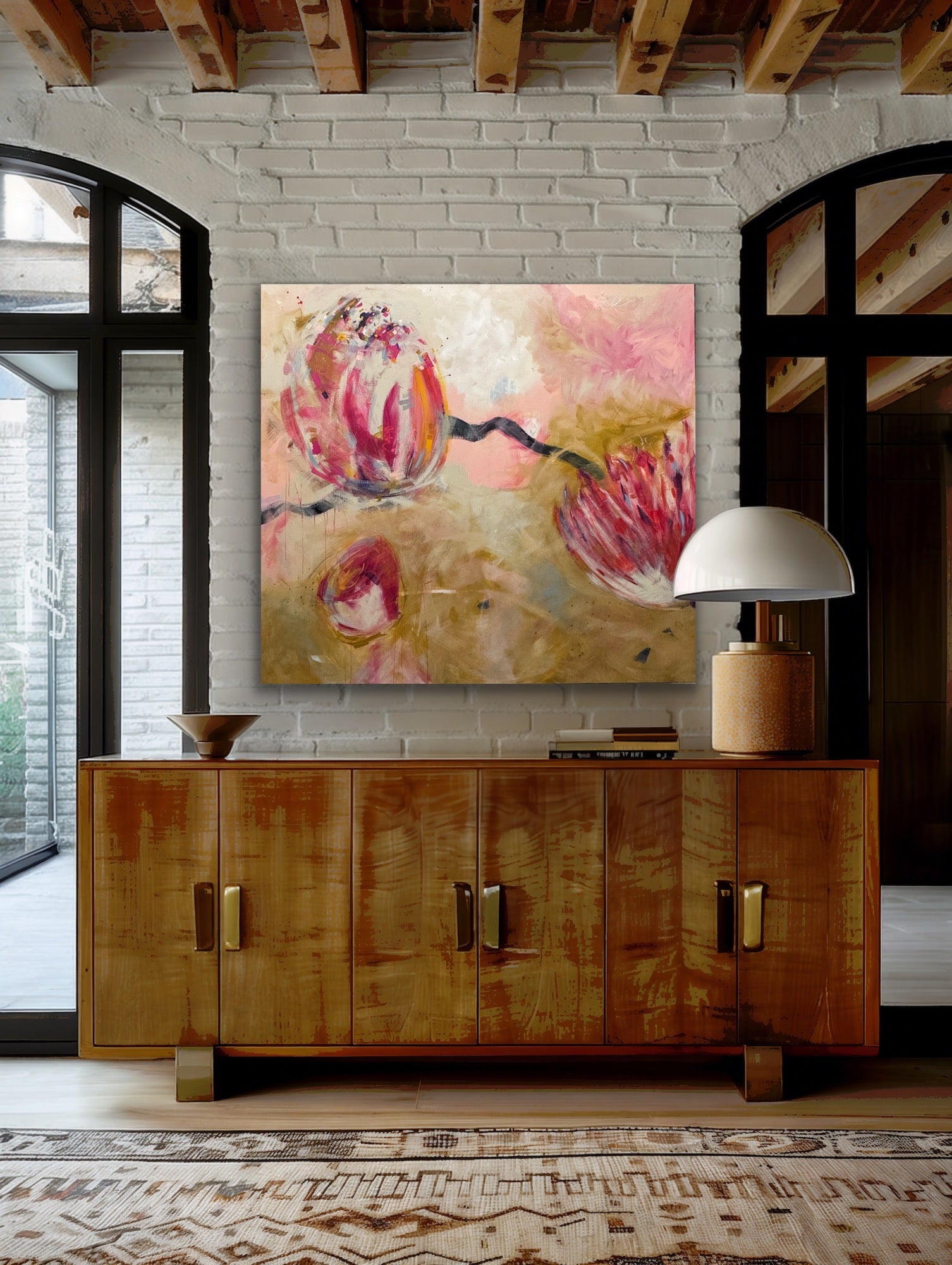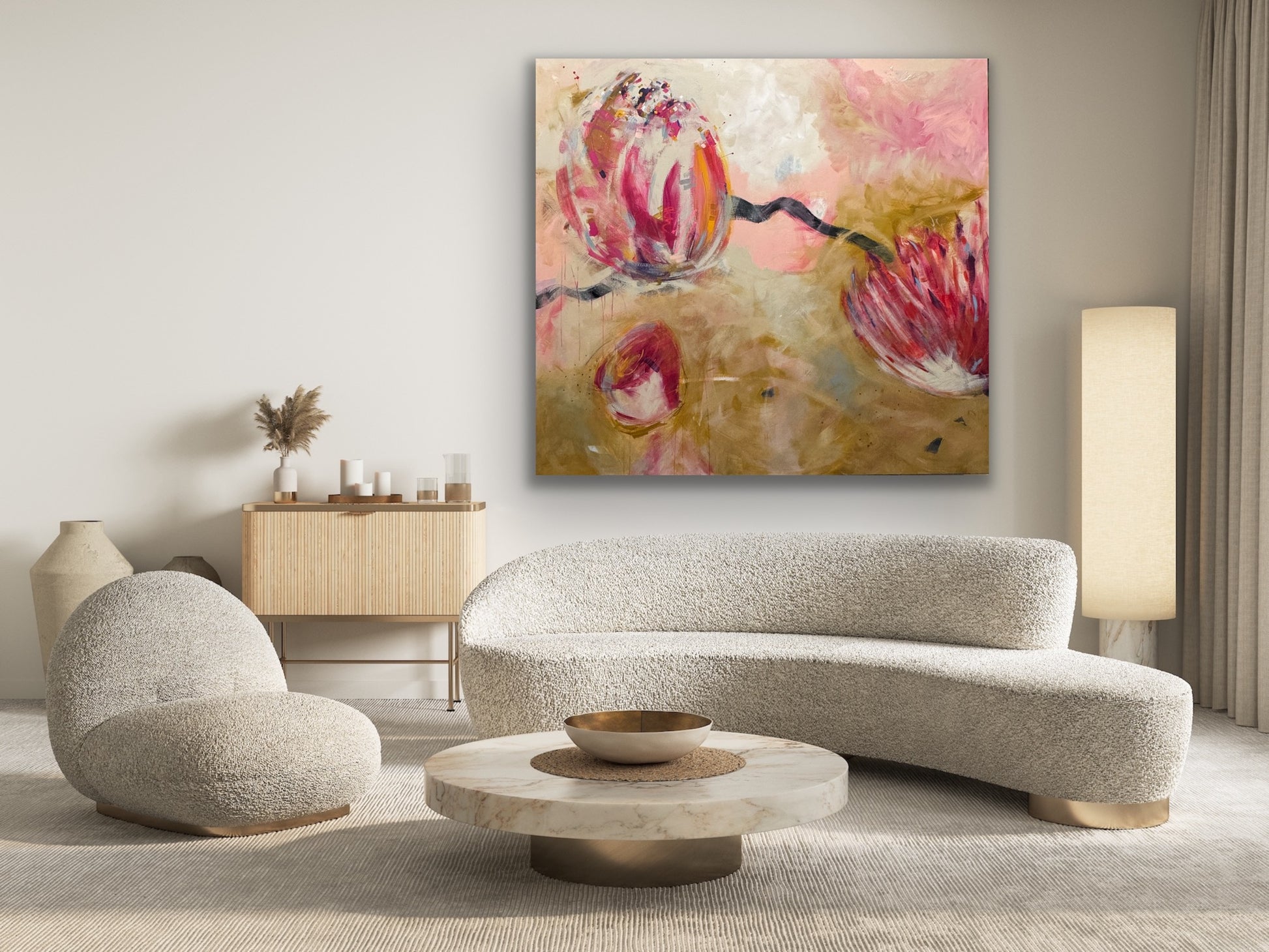 Golden Floral is a large, contemporary floral that really rocks a room! Acrylic/mixed media on canvas.