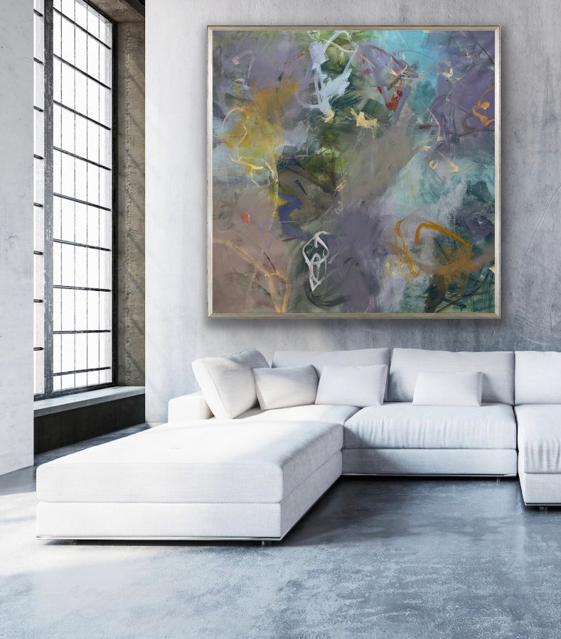 I Hope You Dance is an opulent abstract painting featuring a bold blend of purples, greens, and golds. Its captivating mark-making and vivid hues exude energy, elevating any space with its elegant grandeur. Refresh your interior with this exciting painting.