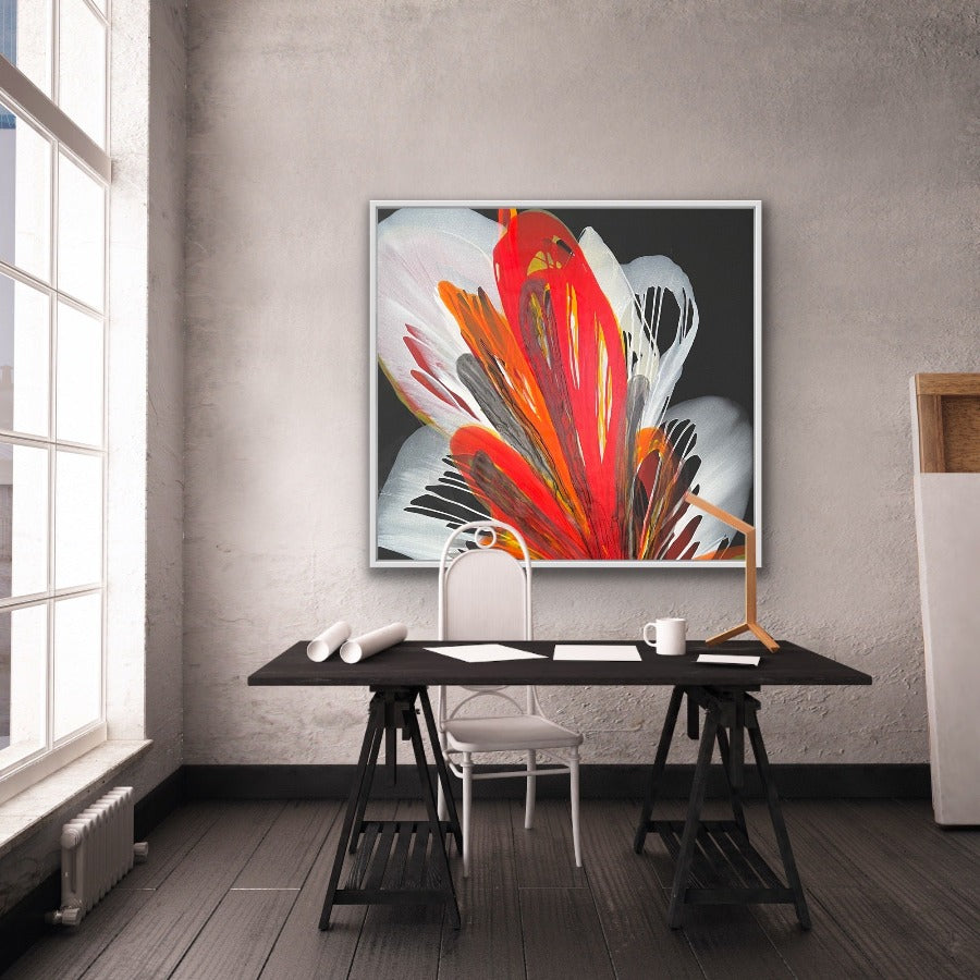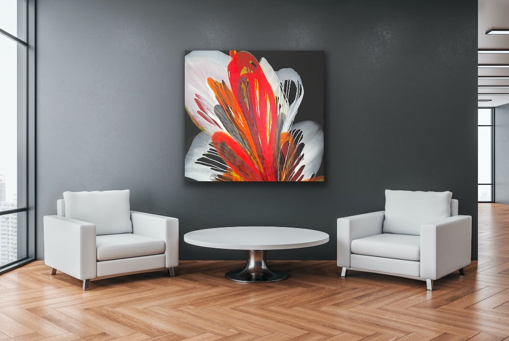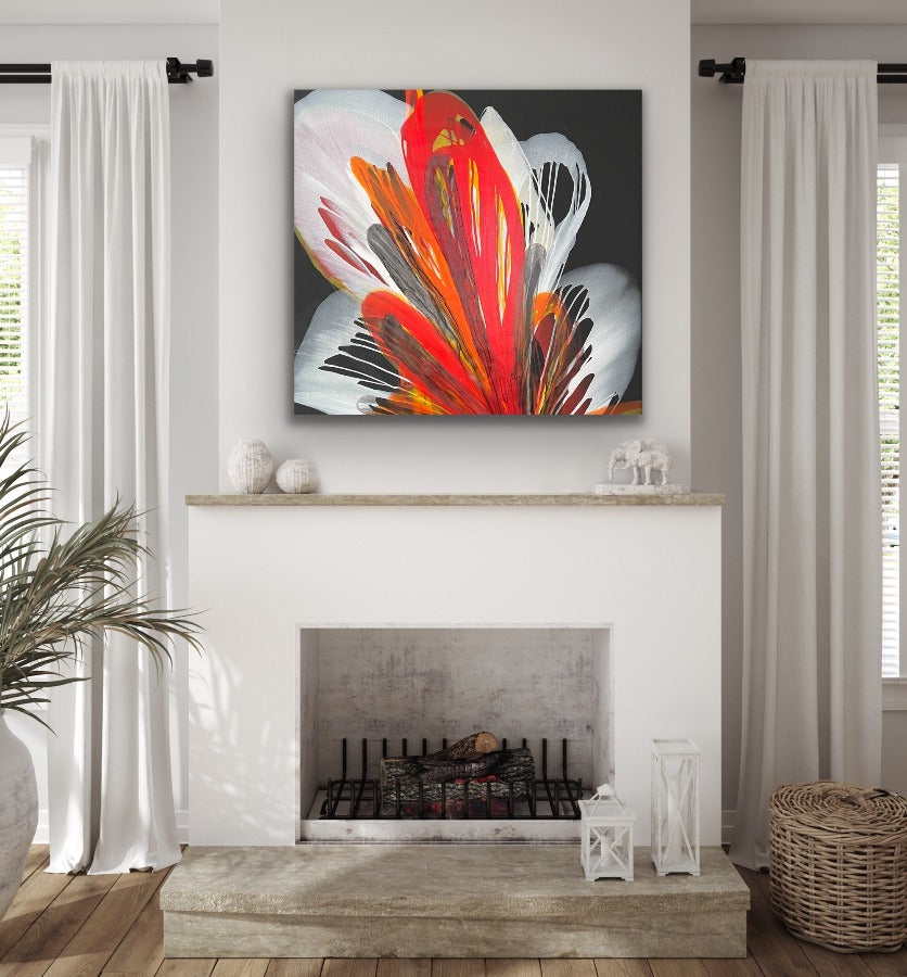 Oleander is a show-stopping poured light abstract acrylic using a technique of pouring very thin, transparent layers.