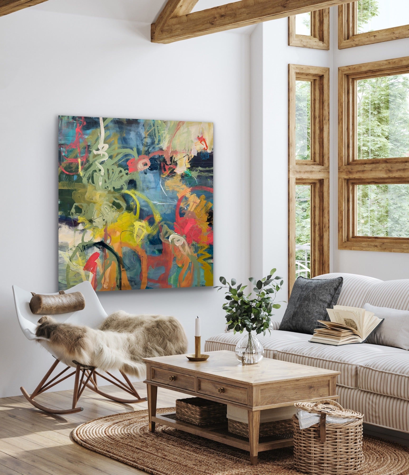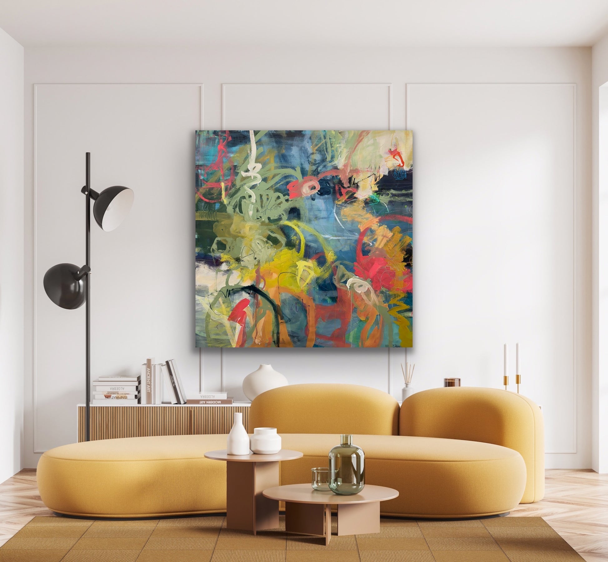 - 60 × 60 inch, unframed. Gallery wrapped.